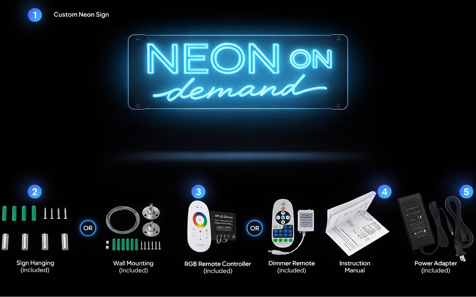 Your sign arrives ready to install. Mount it, plug it in, and enjoy the glow — simple setup, no special tools needed.